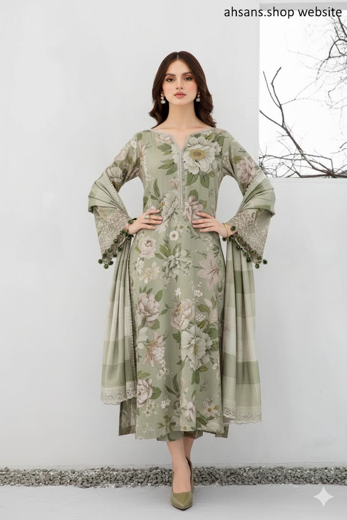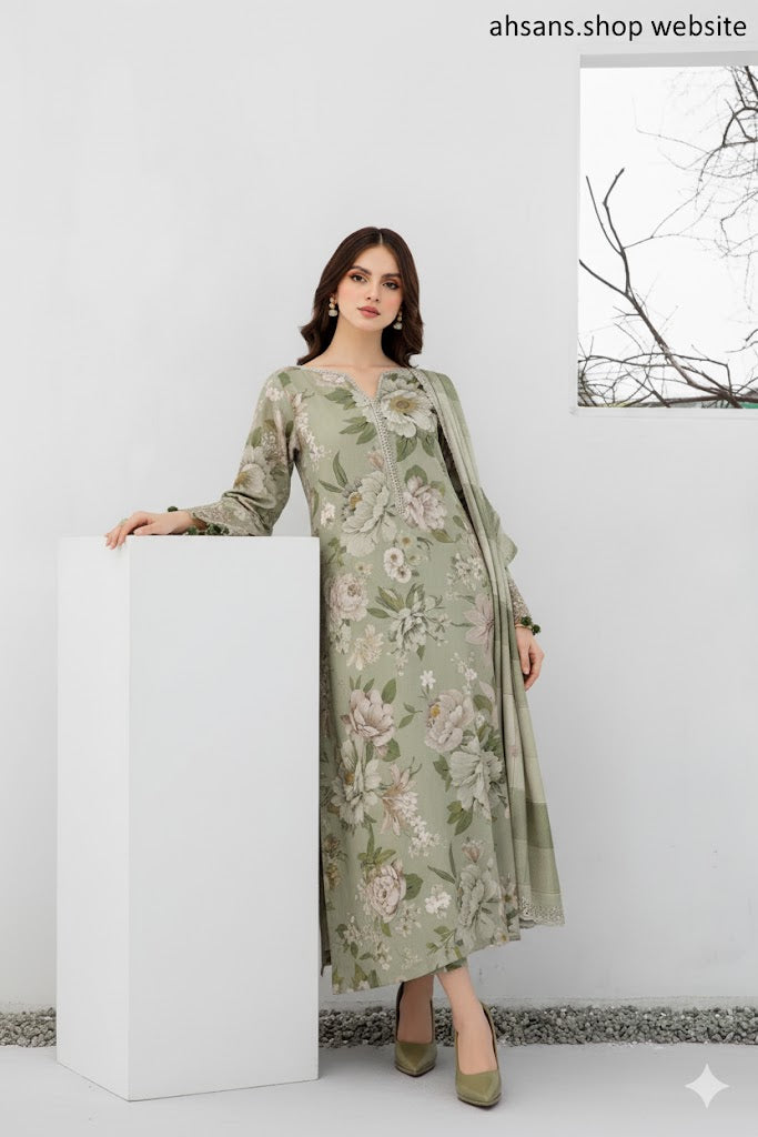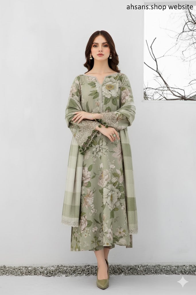 Elevate your winter wardrobe with our beautifully crafted Karandi All Over Printed 3-Piece Suit. Designed with soft printed karandi fabric for the shirt, trouser, and dupatta, this outfit offers both comfort and style. Perfect for casual wear or festive gatherings, it brings a touch of elegance to every occasion.