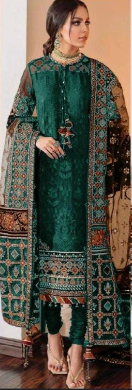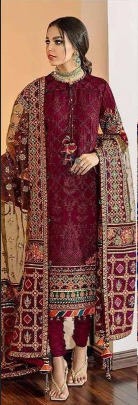 Organza Embroidered Sequence Luxury Wedding Unstitched 3PC ✓